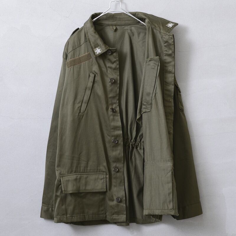 ●90年代にイタリア軍空挺部隊が採用していたジャケットです。柔らかな質感のコットンサテン生地を使用しており、バックウエストにはゴムで収縮するギャザー入り。フロントを開けて羽織っても広がりすぎることがなく、上品な雰囲気のあるジャケットです。